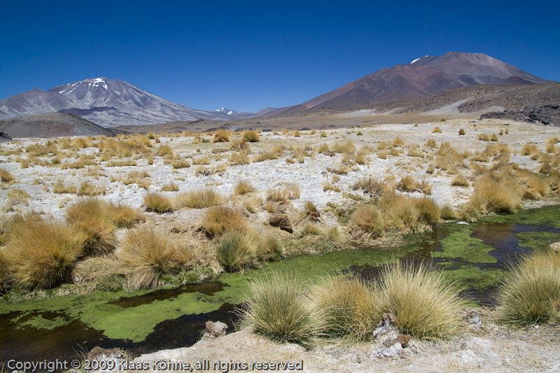 Erster Erkundungsspaziergang in der Puna. Rechts der San Francisco (6018m), links der Incahuasi (6621m).