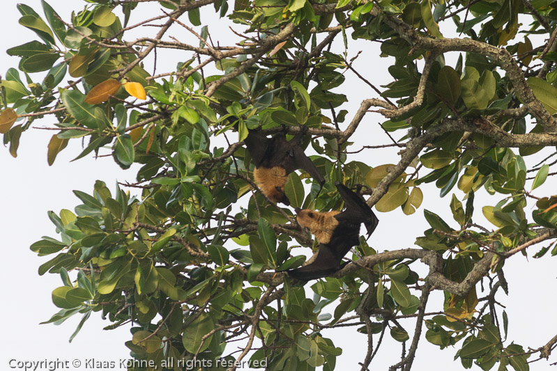 Am späten Nachmittag werden die Flughunde (Pteropus seychellensis) aktiv.