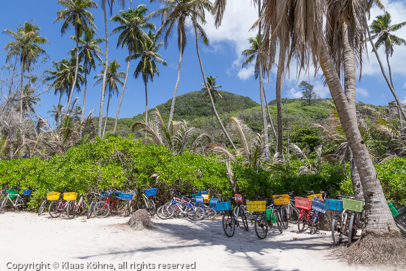 Per Fahrrad zum Strand von Grand Anse an der Südostküste von La Digue