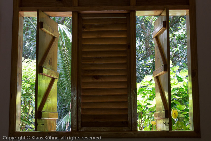 Am nächsten Morgen: Blick zum Dschungel. Warme Luft, tropische Geräusche - far away from home...