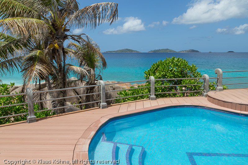 Der Hotelpool des "Patatran" mit Blick auf die vorgelagerten Inseln