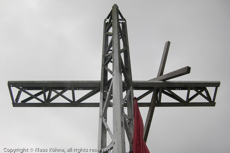 Geschafft! Am Gipfelkreuz auf 699m Höhe.