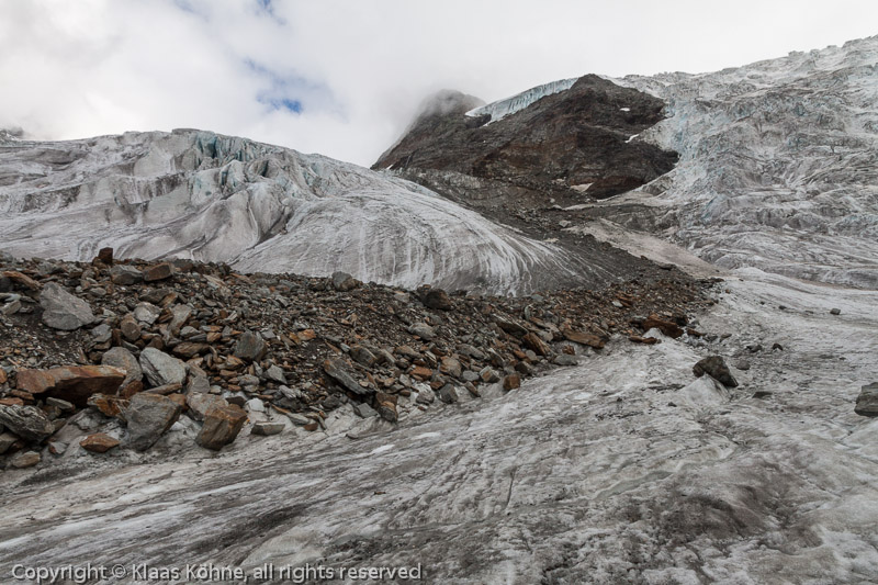Auf dem Riedgletscher. Die Querung ist ziemlich harmlos, die Szenerie sehr beeindruckend - besonders, wenn man Erdkundelehrer ist...