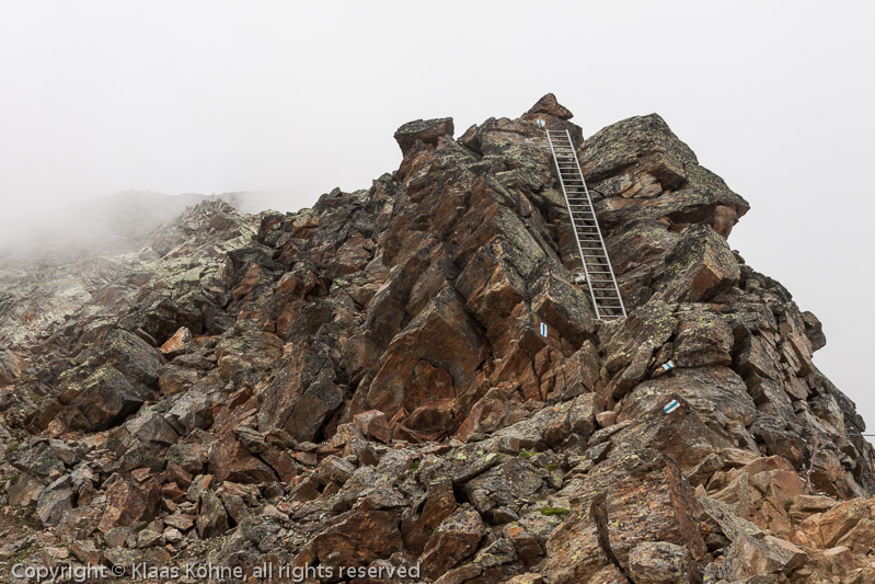 Der Abstieg erfordert durchaus Konzentration, vor allem bei mir mit meinem sperrigen 65-Liter-Rucksack. Eine große Leiter entschärft das steilste Stück.