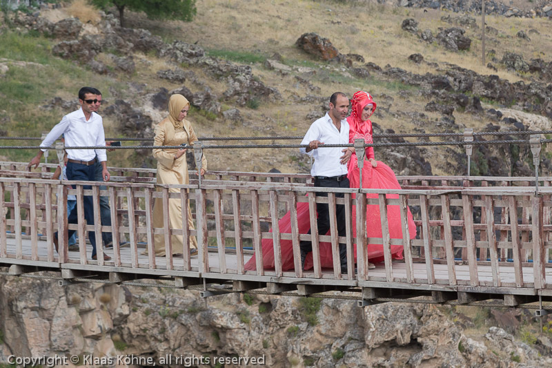 Hochzeitsgesellschaft!? Sie gehen über eine hohe, schwankende Brücke - welche Symbolik!
