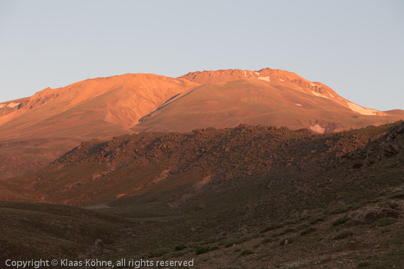 Erstes Licht am Mount Süphan um kurz nach fünf. Noch rund 1500 Höhenmeter bis zum Gipfel.