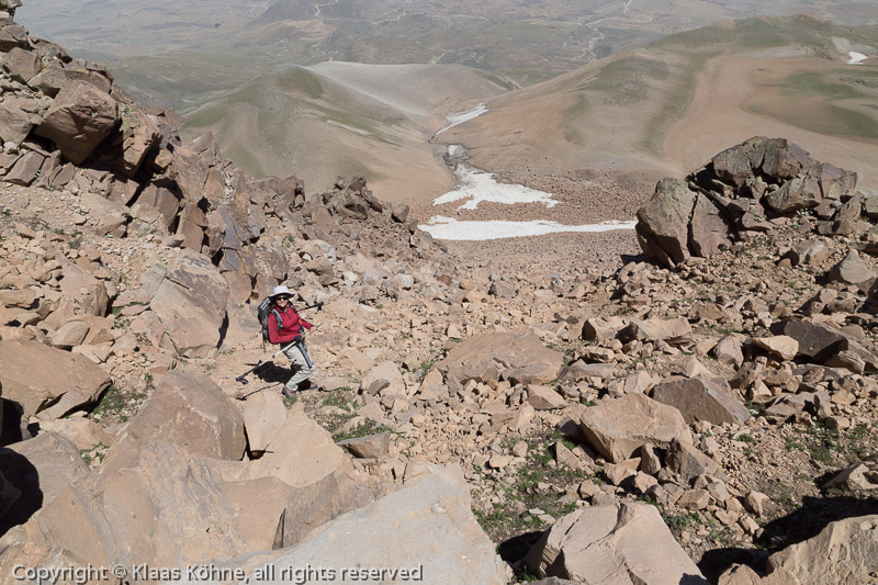 Jedenfalls ist keine Zeit, um die anderen Kandidaten zu besuchen. Also Abstieg mit etwas mürrischen Gedanken. Ismet, unsere Bergführerin, wartet schon auf mich.