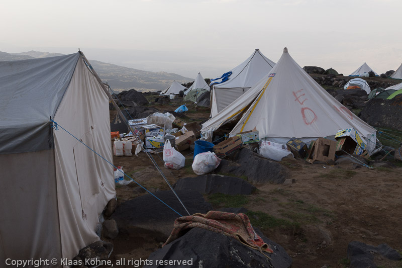 Langsam zeigt das Lager mehr Aktivität. In den großen Zelten wird das Frühstück vorbereitet. Heute soll es zur Akklimatisierung in´s Hochlager auf 4200m gehen. Geschlafen wird aber wieder hier "unten" auf 3300m.