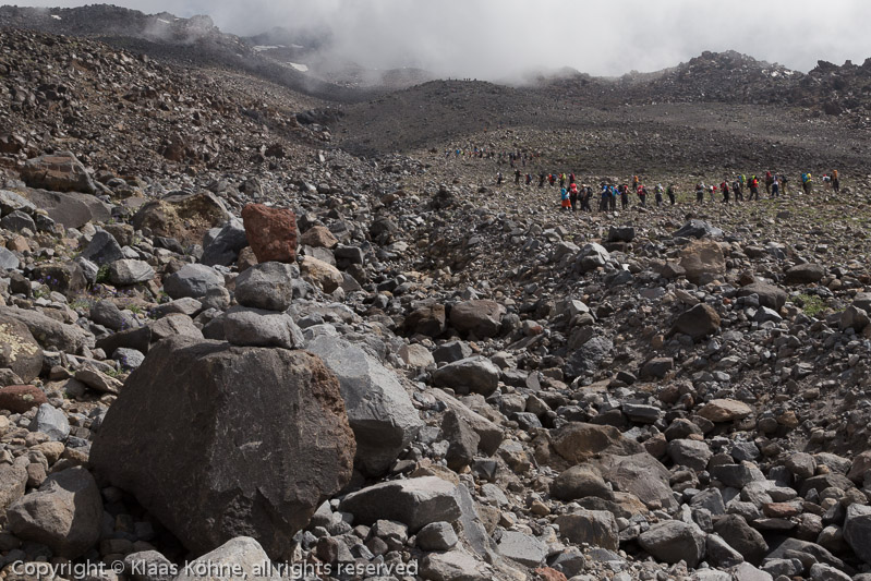 Wieder am Steinmann. Ab hier geht es steiler aufwärts. Auch heute ist wieder viel los am Hang.