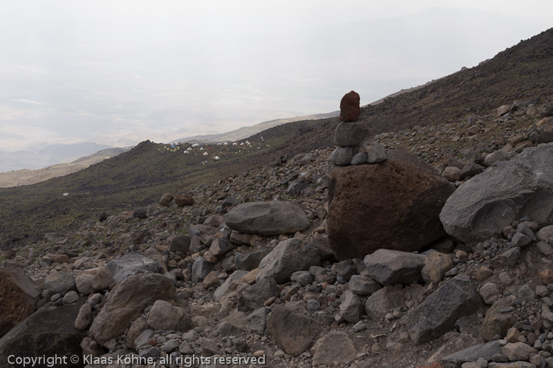 Von diesem markanten Steinmann bis zum Lager dauert es noch eine knappe halbe Stunde.