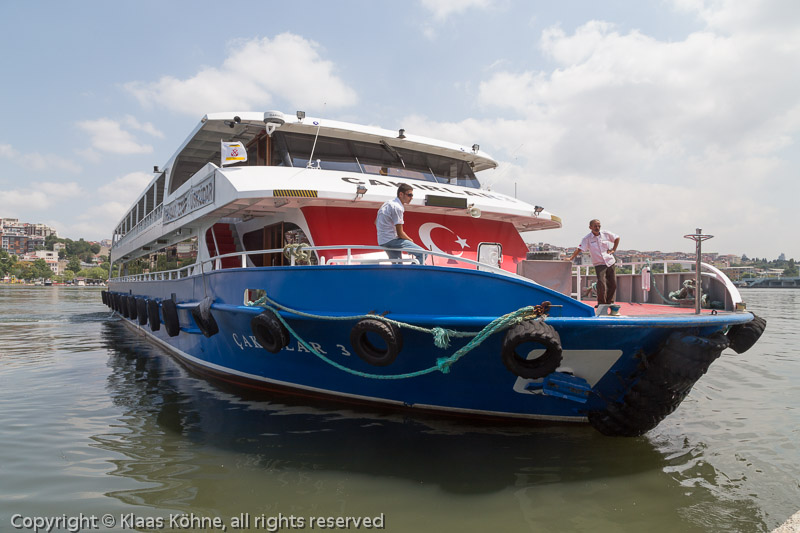 Pünktlich kommt das Boot, das mich zu Galata-Brücke bringen soll.
