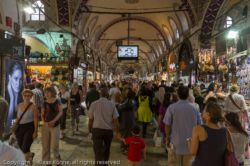 Dies ist die Kalpakcilar Caddesi, die breiteste Straße im Großen Basar. Hier sind viele Juweliergeschäfte angesiedelt, obwohl der Name eigentlich "Straße der Fellmützenverkäufer" bedeutet.