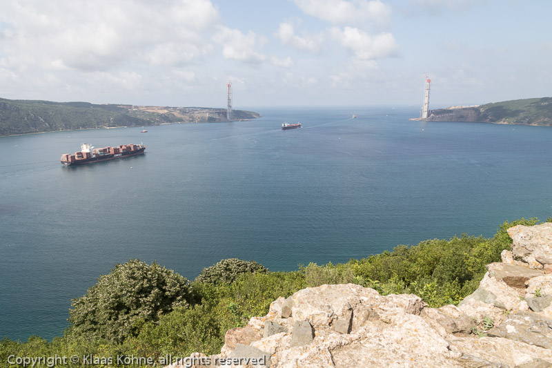 Blick über das nördliche Bosporusende. Die Brücke soll 2015 fertiggestellt werden und "Yavuz-Sultan-Selim-Brücke" heißen. Der Name "Erdogan-Brücke" hätte mich aber auch nicht überrascht...