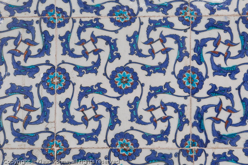 Berühmt ist sie für den kunstvollen Kachelschmuck. Das Zentrum der Kachelfabrikation lag damals in Iznik, einer kleinen Stadt südlich von Istanbul.