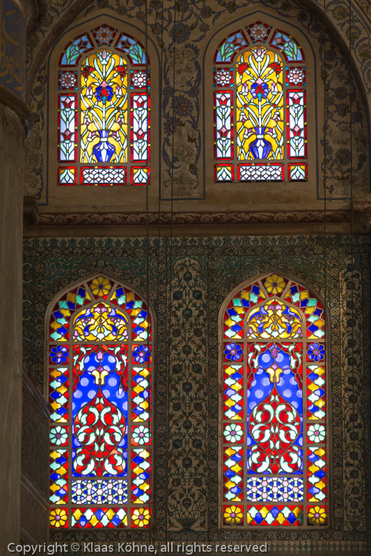 Bunte Glasfenster - immer wieder schön. Ursprünglich war auch bei den Fenstern Blau die stark dominierende Farbe.