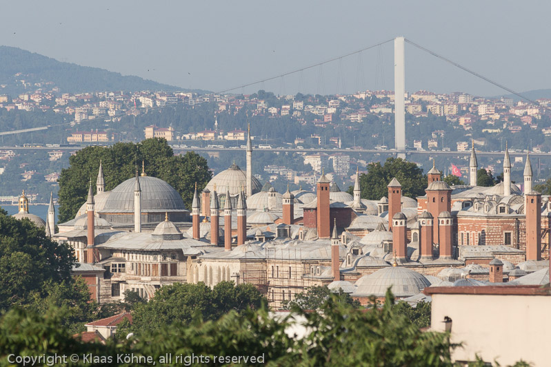 Die Dächer und Türmchen des Topkapi-Palastes vor der asiatischen Seite der Atatürk-Brücke
