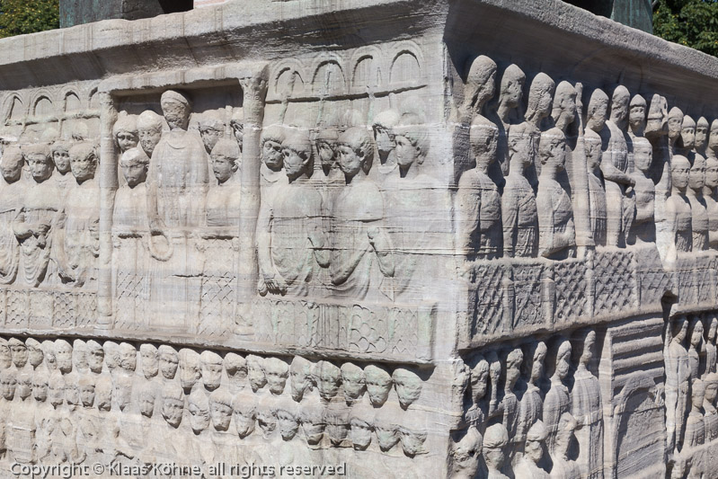 Auf den Sockelreliefs wird die Familie von Kaiser Theodosius verherrrlicht.
