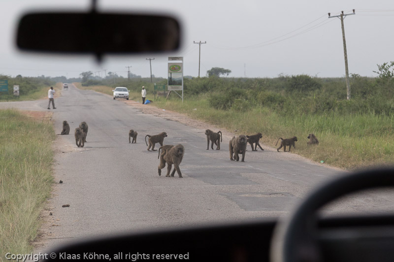 Oha, da sind wieder die Anubispaviane! Fenster schließen und langsam weiterfahren.