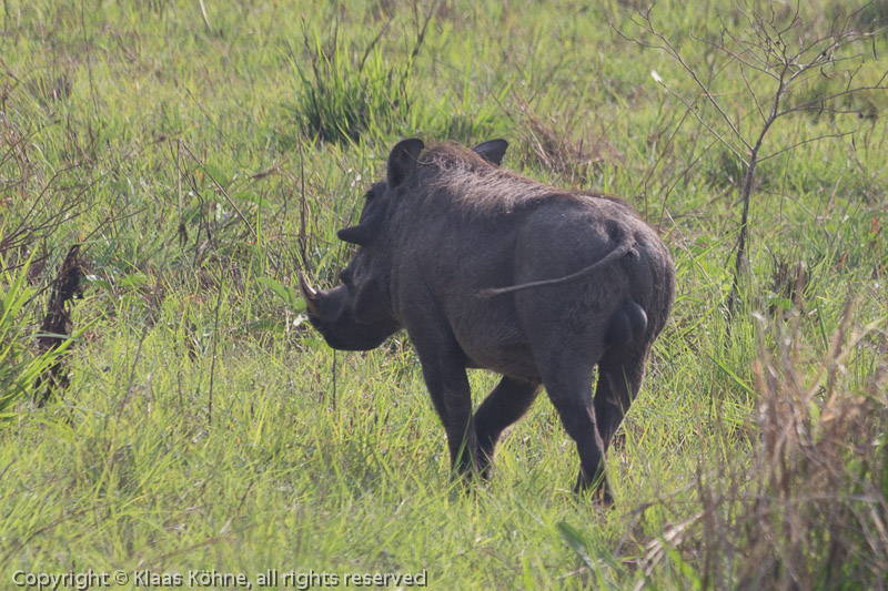 Ein Warzenschwein (Phacochoerus aethiopicus) beim Abgang