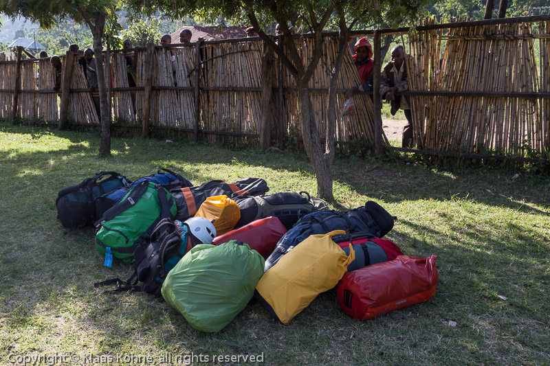 Unser privater Gepäckhaufen - neugierig beäugt von den Dorfbewohnern