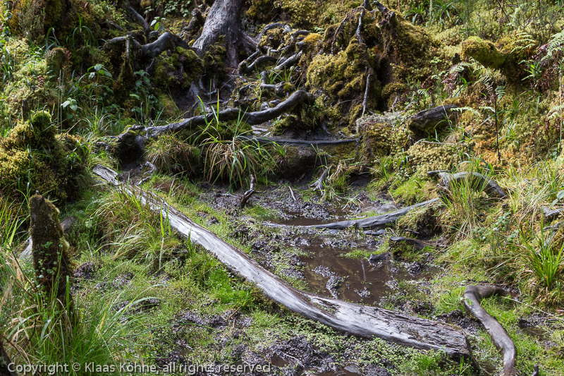 Nach dem Regen ist natürlich alles ziemlich matschig. Und auf den glatten Wurzeln muss man weiterhin höllisch aufpassen.