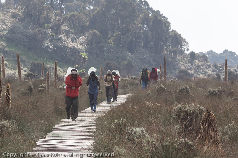 Der übliche Ablauf: Wir brechen mit den Guides vor den Trägern auf, aber bald haben sie uns eingeholt. Mich natürlich besonders schnell...