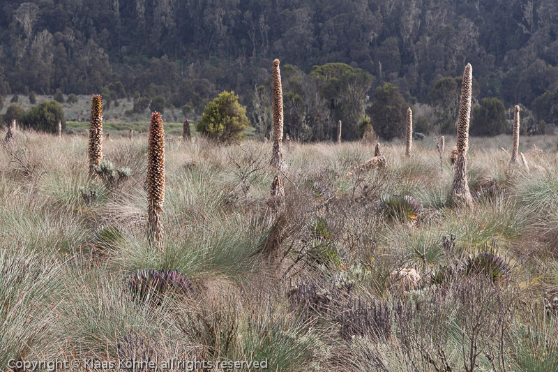 Abgestorbene Lobelien im Sumpf (= "Bog")