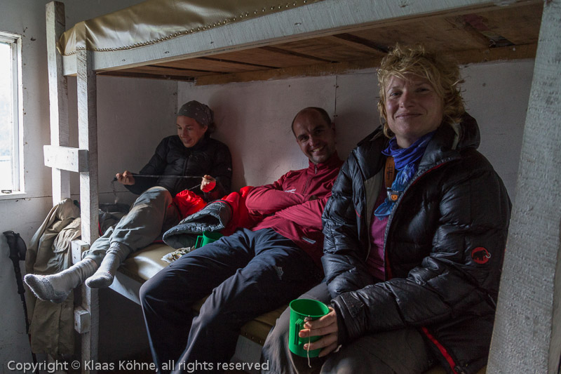 Auch drinnen ist die Stimmung bestens, jedenfalls bei Karen, Marcus und Katja.