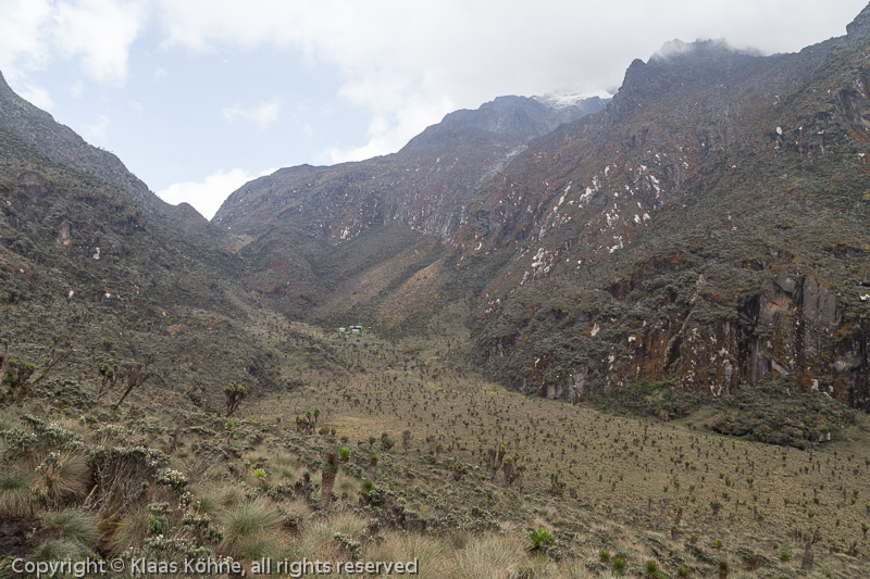 Langsam gewinnen wir aber etwas an Höhe. Blick zurück auf die Bujuku-Hütten und den Stuhlmann-Pass. Bin immer noch begeistert von meinem gestrigen Ausflug. Die zweieinhalb Stunden haben sich wirklich gelohnt!
