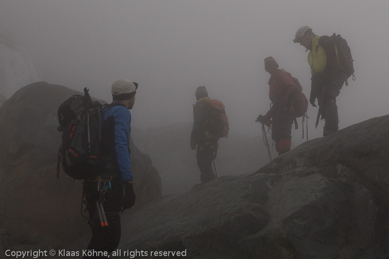 Schwierig ist das Gelände nicht, aber der Nebel drückt etwas auf die Stimmung - bei mir jedenfalls...