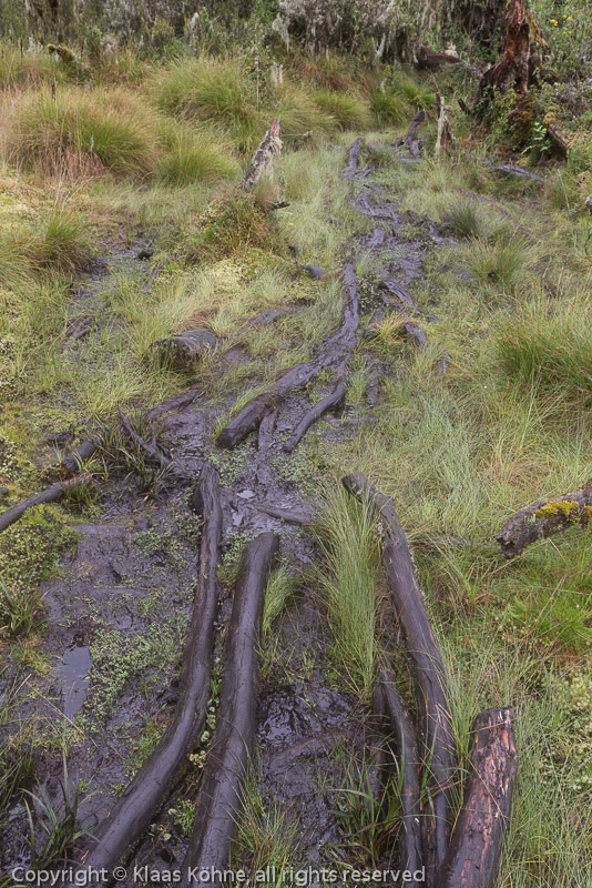 Die dann aber gleich wieder runtergezogen wird. Auf rutschigen "Schienen" durch den Sumpf. Und nicht immer klappt der Balanceakt...