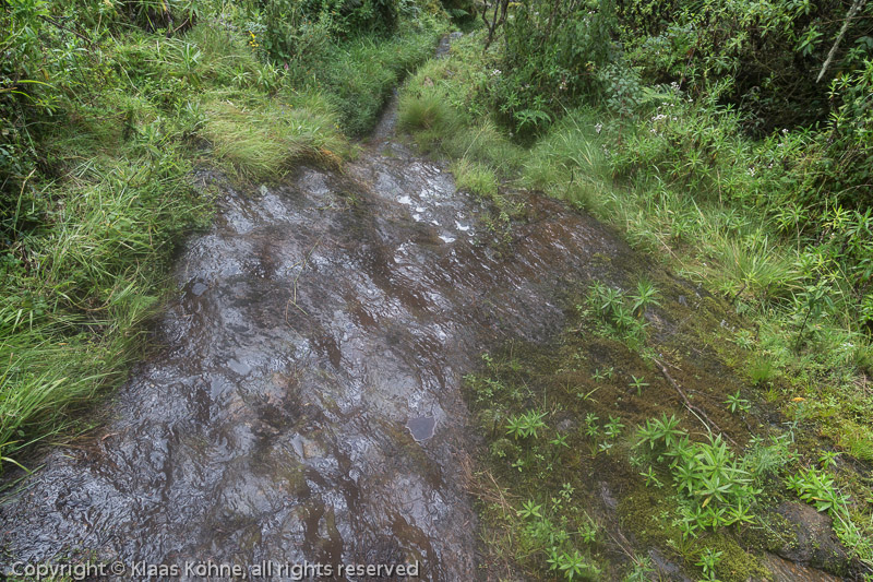 Aha, mal wieder eine nasse, schräge Felsplatte. Da gehe ich lieber nur zentimerweise vorwärts.