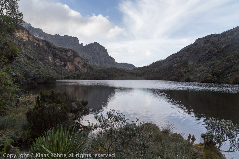 Ruhe nach dem (Gipfel-)sturm! Nach längeren Verhandlungen einigen wir uns mit den Guides dahingehend, dass jeder in unserer Gruppe selbst entscheiden kann, ob er den Tag, wie ursprünglich geplant, hier am Kitandara Lake verbringt oder schon heute zur Guy Yeoman Hut absteigt. Für mich ist der Fall klar: Hierbleiben! Erstens ist das hier ein sehr schönes Fleckchen Erde, zu dem man ja wohl so schnell nicht mehr hinkommen wird, und zweitens denke ich, dass ein Ruhetag zwischen der langen Gipfeletappe und der laut Literatur ziemlich heftigen Strecke zur Guy Yeoman Hut nicht ganz verkehrt ist.