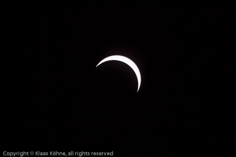 Nach und nach gibt der Mond wieder die Sonnenscheibe frei. Ab jetzt ist auch wieder zwingend ein Filter erforderlich.