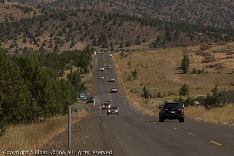 Obwohl die Sonne noch fast komplett verfinstert ist, fahren schon viele Leute nach Hause.
