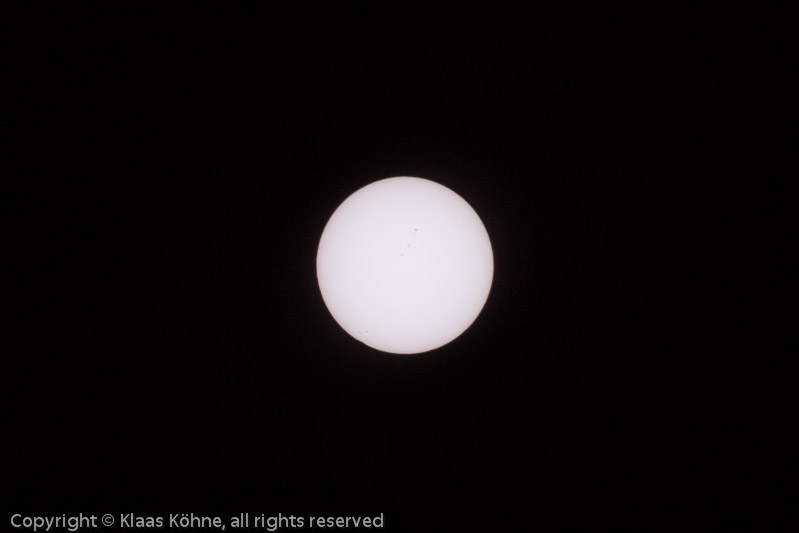 Um 11h44 ist nur noch ein winziges Stück der Sonnenscheibe (unten links) vom Mond bedeckt. Jetzt packe auch ich die Ausrüstung zusammen.