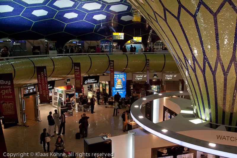Der Bus kommt spät, unterwegs muss er noch tanken und schließlich fährt er auch noch am Flughafen vorbei, weil er erst zu einem anderen Terminal hin will. Bloß das nicht! Kurz entschlossen halte ich zusammen mit ein paar anderen Leutchen den Bus an, springe raus und haste zurück zum Terminal. Verdammter Mist! Keuch, schnauf! Nur gut, dass ich jetzt nicht noch den großen Rucksack dabei habe. Außerdem habe ich ja schon den Boarding Pass. Um kurz vor zwölf bin ich wieder im Flughafen. Dort der nächste Stress: Irgendein offizieller Typ meint, dass mein in Kathmandu ausgestellter Boarding Pass ungültig ist! OK, scharf ausatmen und in die Check-In-Schlange bei Etihad einreihen. Der Mann von Etihad hält meinen Boarding Pass für gültig, druckt mir aber freundlicherweise einen neuen aus. Damit haste ich wieder zu dem uniformierten Blödmann, der mich diesmal passieren lässt. Habe mittlerweile die richtige Betriebstemperatur. Zusammen mit dem Schlafmangel ergibt das richtig gute Laune. Ein paar Minuten im Duty-Free-Bereich (Bild) und dann geht es auch schon in den Flieger. Um 12h32 sitze ich auf meinem Platz. Uff!